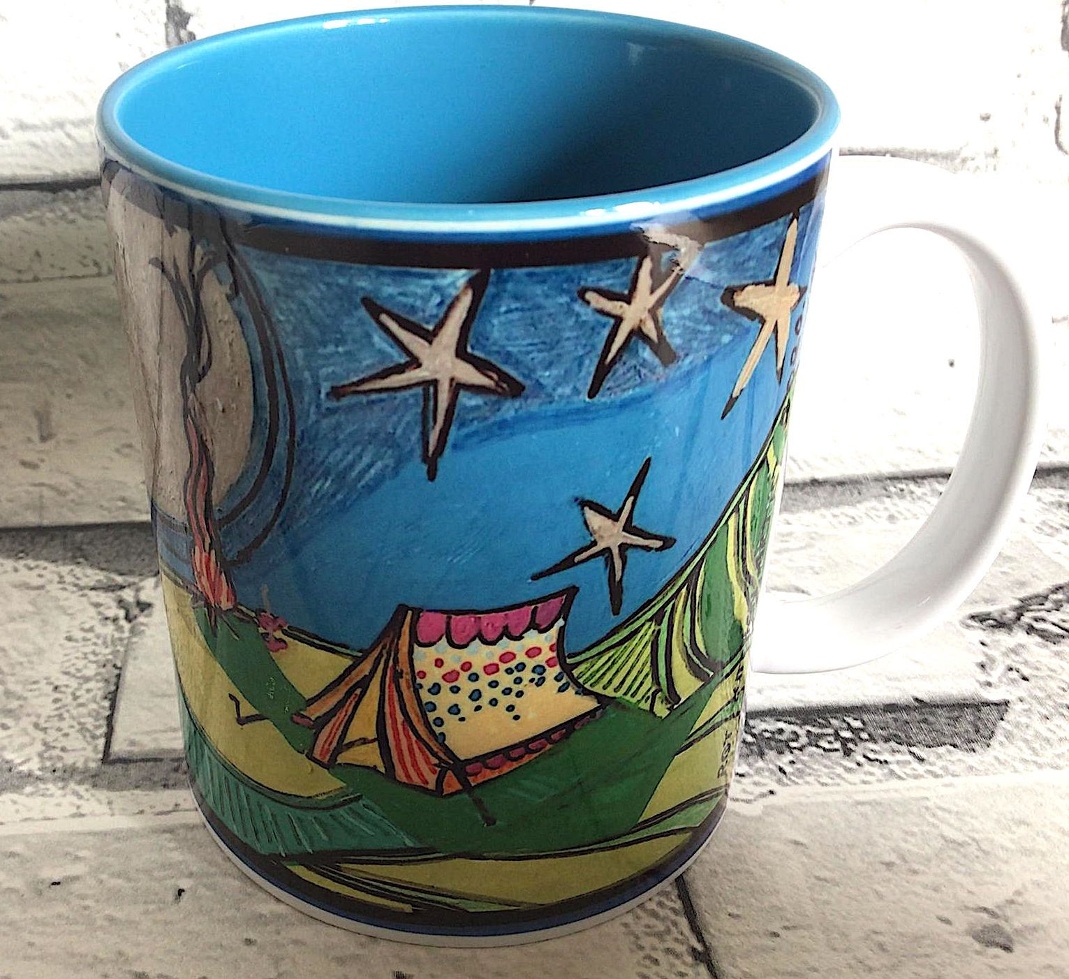 Camping in the English Countryside, setting up your tent and heating water on a flame to make a cuppa! Or at a festival in need of a morning brew? This is the perfect mug for you!