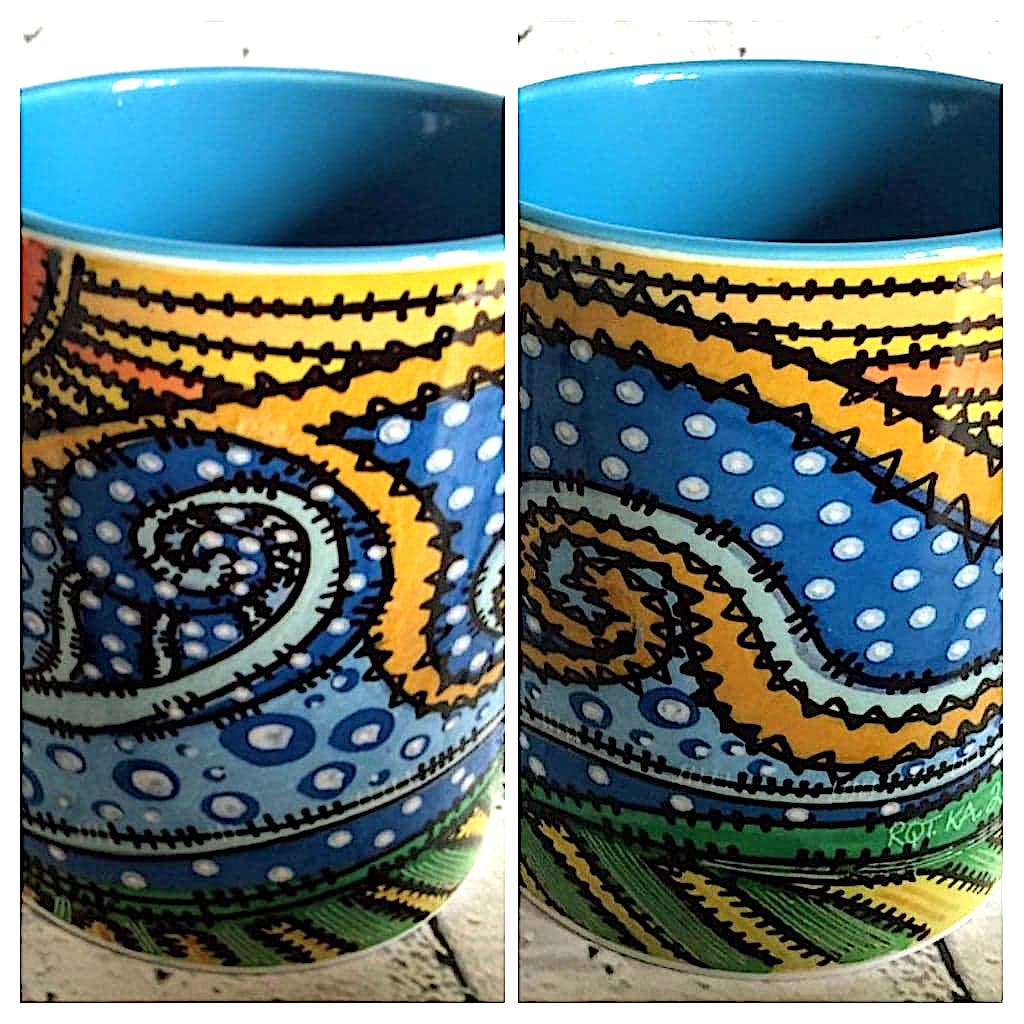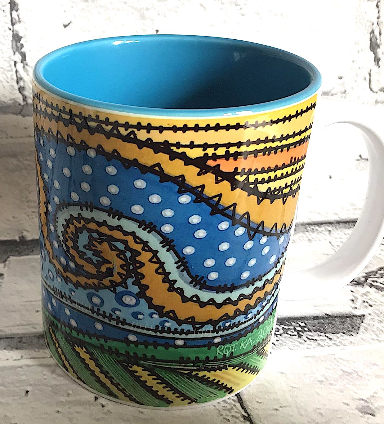 A Summer’s Day, a sun-washed beach scene. Exquisitely designed by artist Rebekah Quantrill-Tozer this mug is both dishwasher and microwave safe, though these can cause fading to the artwork.