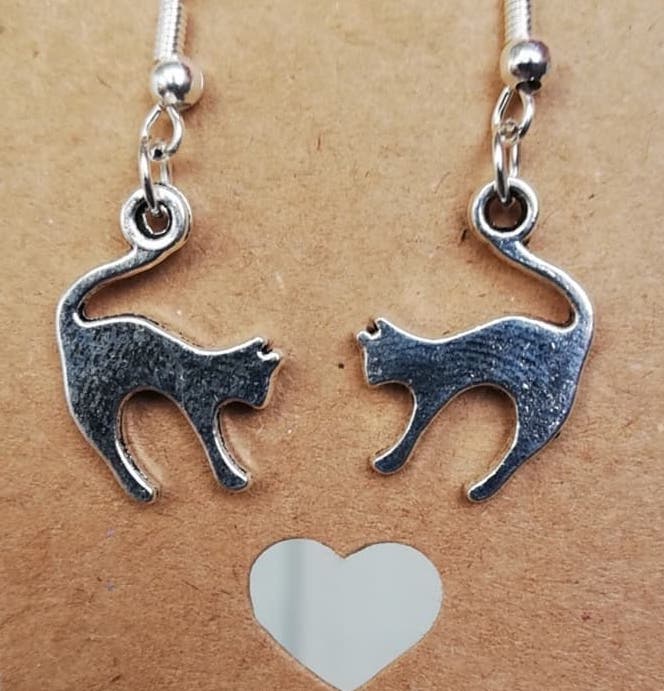 Tibetan-style Cat Charm Earrings with hypoallergenic 925 sterling silver ear hooks. Earring sets arrive gift-wrapped. All orders are dispatched within 2 working days. First class uk delivery is free.